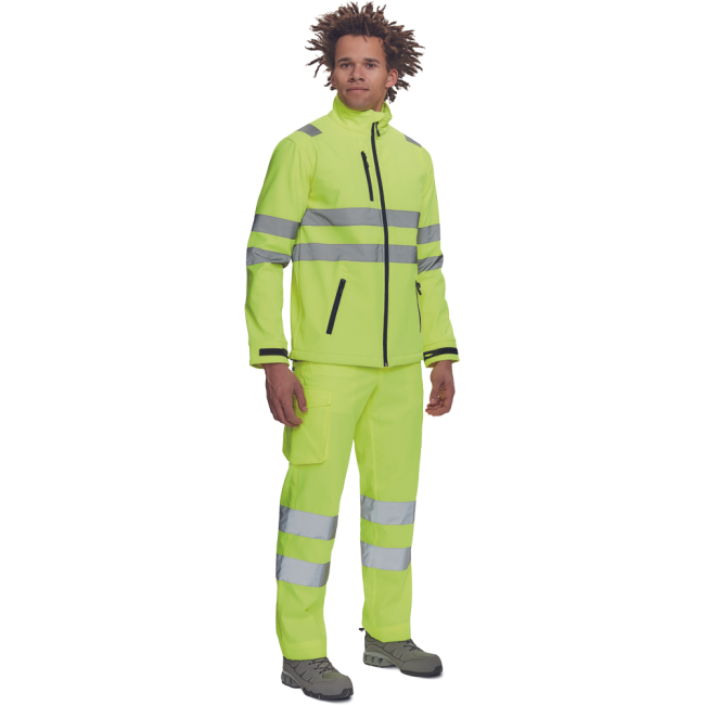 Men's fully HI-VIS sofsthell jacket with breathable TPU water resistant membrane