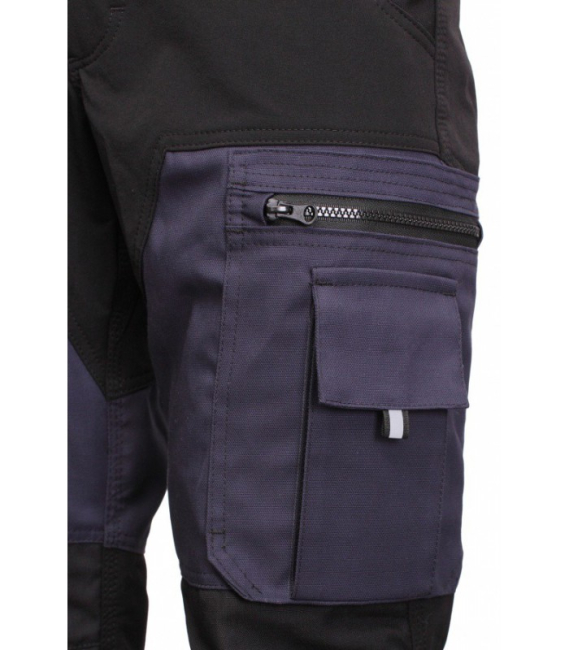 The pants have two roomy pockets on the front and close with a zipper on the back of the pants. In addition, the pants have a zippered pocket on the left side and a tool pocket on the right side, which allows you to carry all the most important tools. The pants have integrated non-restrictive, elastic fabric inserts that allow perfect movement. The cuffs and bottoms of the legs are reinforced with high quality Cordura fabric, which will extend the wearing time of these trousers and is especially important when working on the knees. There is also an option to add insets. You will be able to perfectly adjust the pants to the desired height, as these pants have a double support at the bottom for adjusting the height of the pants.
