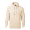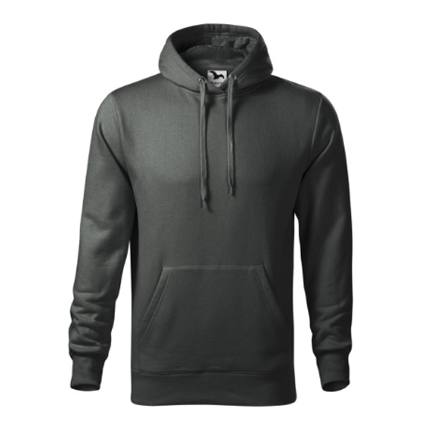 Modern, sporty style men's sweater with hood and front pocket. Arm and sweater hem knit 2:2, 5% elastane.