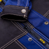 Bib pants chest pocket is fastened with high quality and durable zipper manufacturer with the proposed site for a company logo. Bottom pockets reinforced with double cloth. On the left side of trousers there is a double volume pocket with alteration, for small tools and fastening pocket for small items. Roads in the area pockets slipped knee pads high strength and abrasion-resistant fabric CANVAS. Canvas cloth is reinforced bib pants legs loins sides of the bottom. Bib pants inner side has user's ID card (resistant to washing) that are easy to move and can be noted by the company name or a user name.