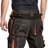 Vīriešu darba bikses ar elastīgu jostasvietu, divas sānu kabatas + 2 noņemamas instrumentu kabatas, viena universāla sānu kabata ar instrumentu cilpu.