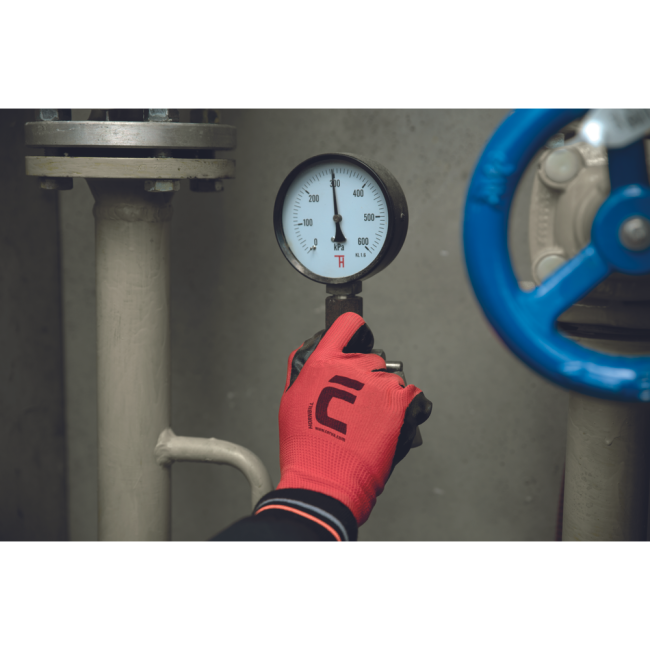 Lateksa pārklājums plaukstas un pirkstu zonā nodrošina ļoti labu saķeri pat ar raupjām virsmām, kā arī paaugstinātu izturību pret nodilumu. Elastīgā adītā aproce notur cimdus droši vietā un pasargā no netīrumu iekļūšanas.