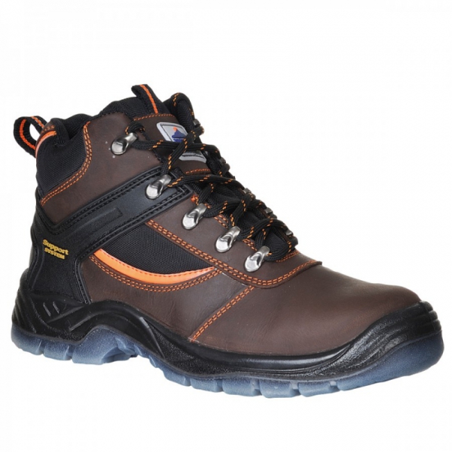 Кожаные ботинки с металлическим подноском и металлической пластиной в подошве, которая защищает ноги от проколов.