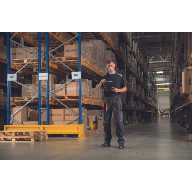 Рабочие брюки EMERTON STRETCH изготовлены из очень прочной и эластичной ткани, с эластичным поясом, многофункциональными карманами, усилениями Oxford 600D в карманах на коленях, сегментированными светоотражающими деталями и регулируемой длиной штанины, соответствуют стандарту EN ISO 13688.