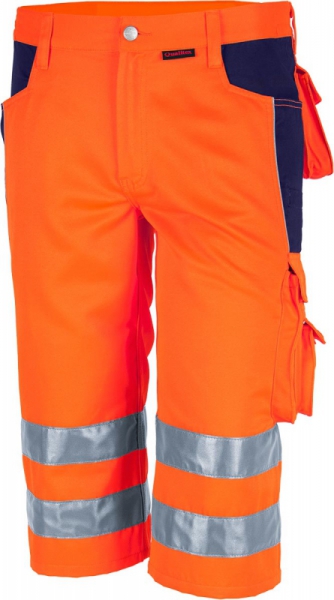 Рабочие шорты сигнального цвета со светоотражающими элементами.