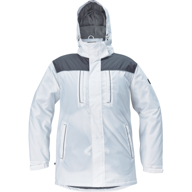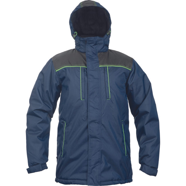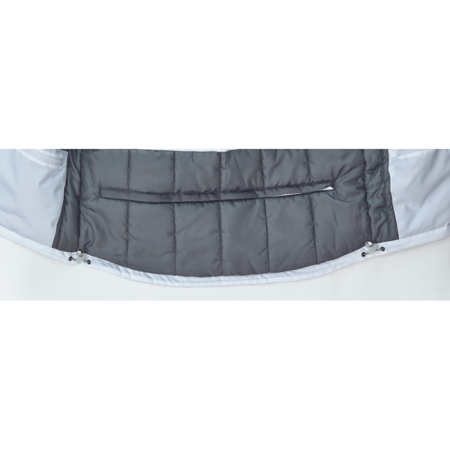 Prolonged back part; 2 chest zipper pockets; 2 side zipper pockets; 1 inside phone pocket with velcro; adjustable draw string in waist and bottom; fleece in collar; adjustable sleeve hems with velcro; reflective piping in contrast color.