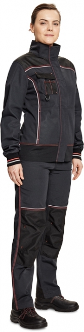 Женская рабочая куртка современного дизайна с воротником-стойкой.