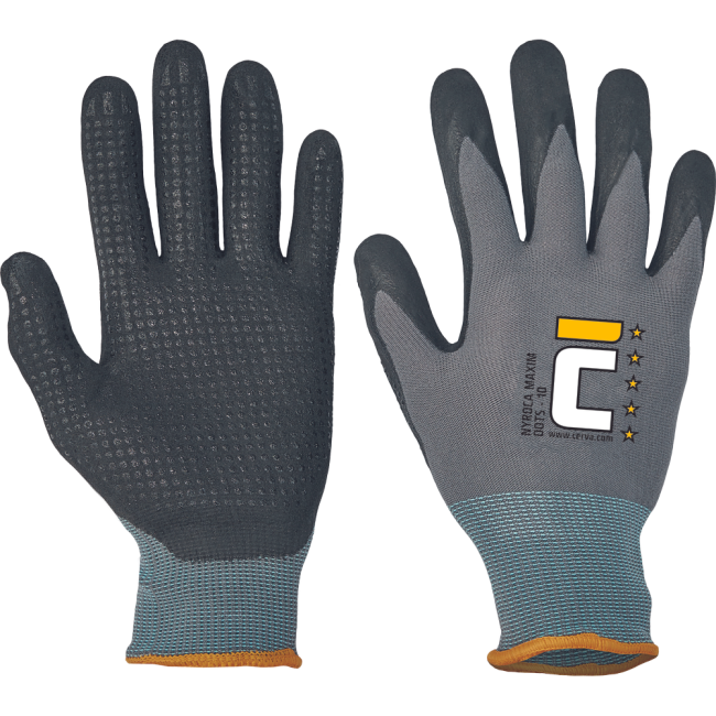 Рабочие перчатки NYROCA MAXIM DOTS сочетают в себе комфорт и высокие технологии. Основа из нейлона и спандекса (вязкая 15-го калибра) обеспечивает плотное прилегание, а микропористое нитриловое покрытие на ладонях и пальцах позволяет коже "дышать". Дополнительные нитриловые точки значительно улучшают захват и увеличивают износостойкость.